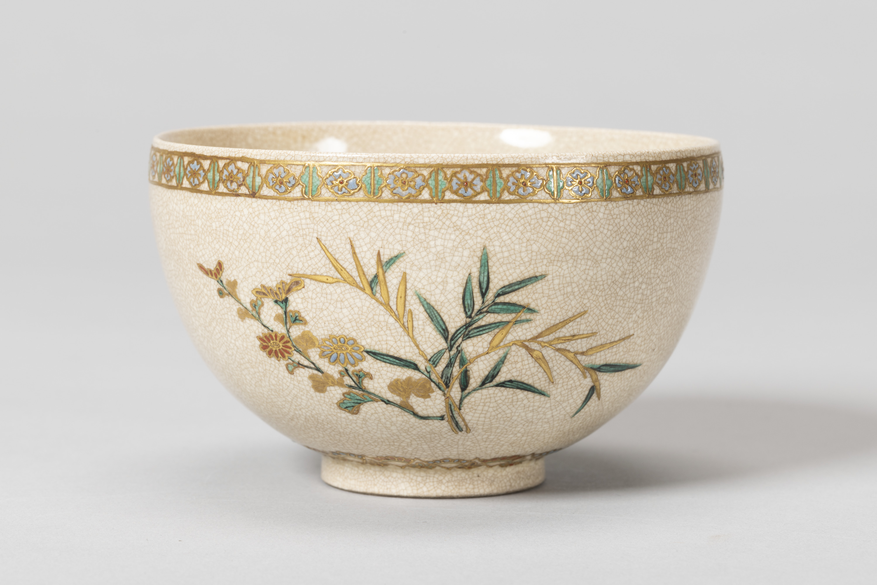 - 金彩色絵四君子文茶碗