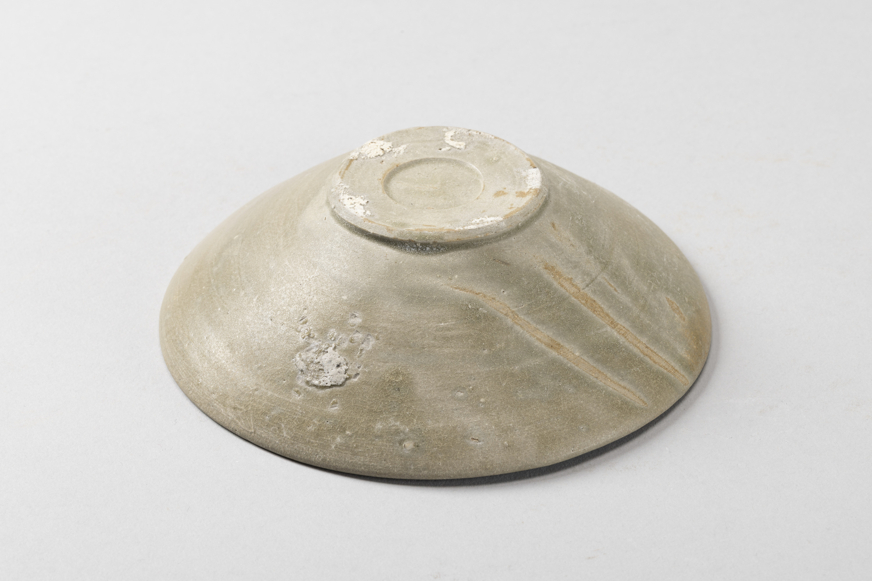 中国浙江省の越州窯系の窯で焼かれた青磁碗である。中国河北省の邢州窯系の窯で焼かれた白磁碗とともに、唐時代において喫茶用の茶碗として広く用いられていたものである。唐時代の茶書『茶経』にも青磁碗の記述がみられ、また青磁碗、白磁碗ともに日本にも持ち込まれており、平安京や大宰府など平安時代の遺跡からも同手青磁碗の出土がみられる。