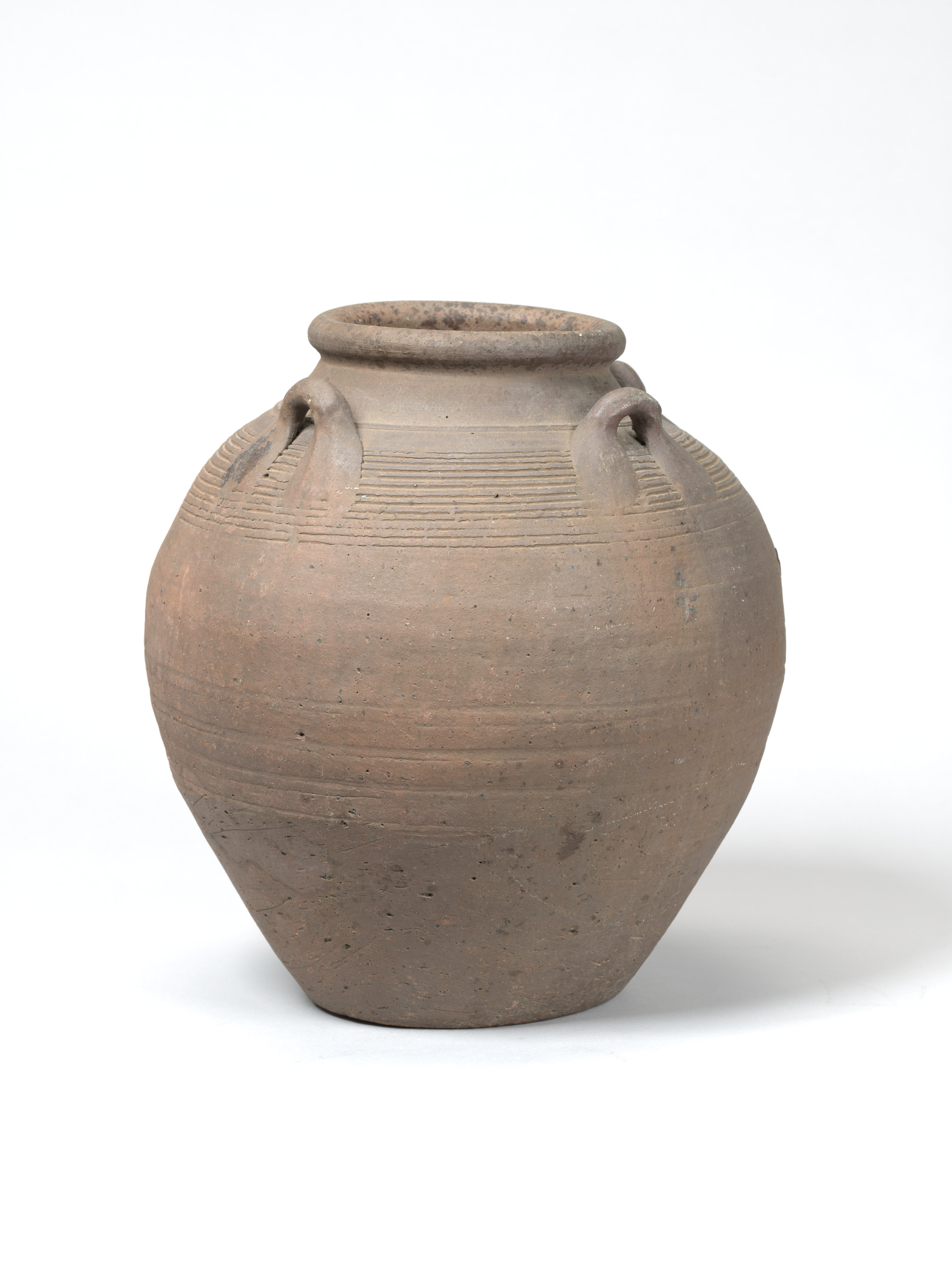 丸みのある口縁に肩に四つの耳が付けられた焼締め壺である。タイ・アユタヤの窯で焼かれたと考えられる。中世大友府内町遺跡や博多遺跡群、堺環濠都市遺跡などから同様のものの出土がみられる。
