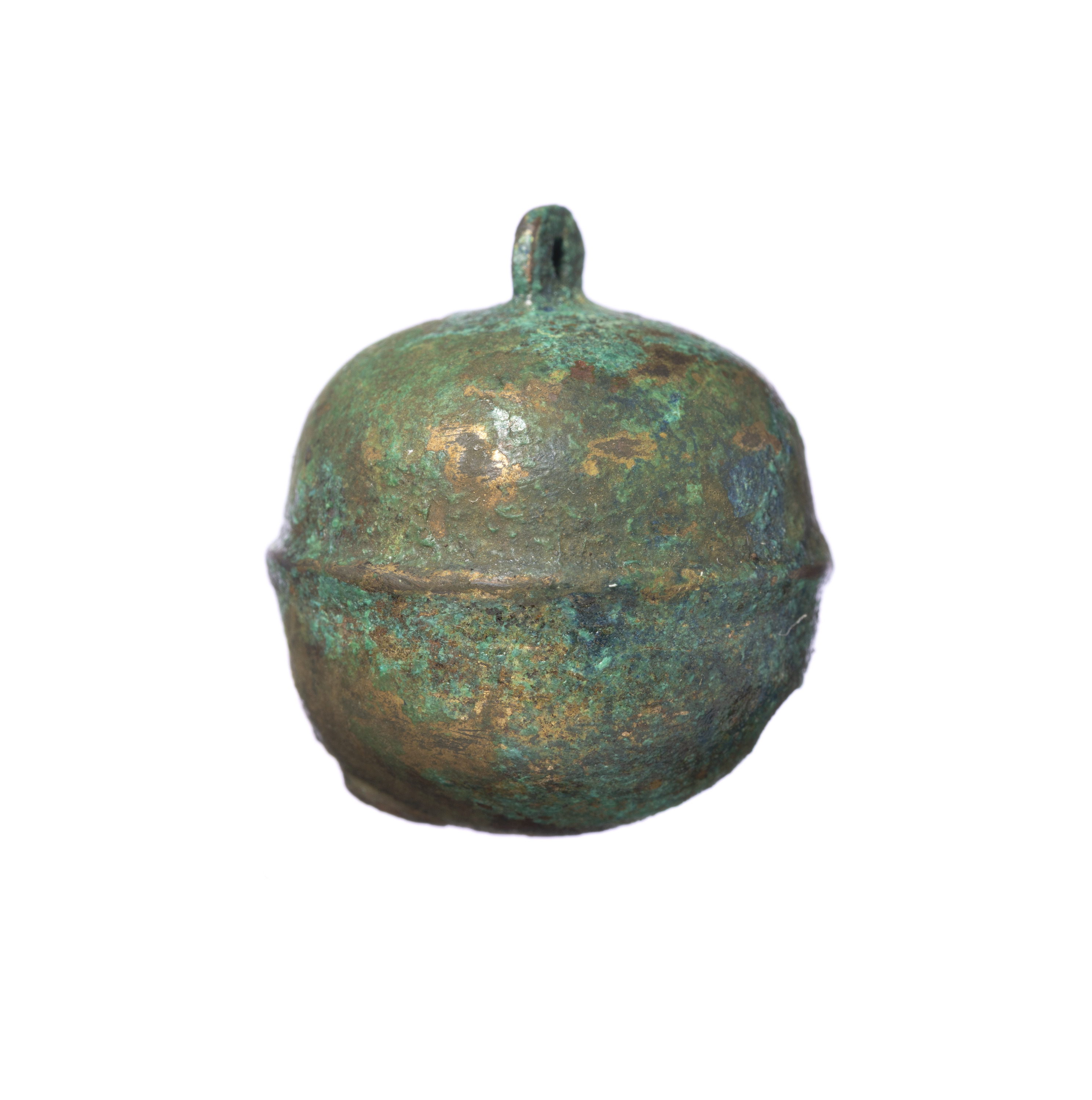 These artifacts were found in the Benzai Tumulus No. 1, which belongs to the Maki Burial Mounds in Fukuchiyama City, Kyoto Prefecture. This 5-meter tall, 20-meter long, round tumulus has atop its mound a shrine dedicated to the Buddhist deity Benzaiten (Skt., Saravati). The east side of a stone chamber was excavated by chance in 1955 (Shôwa 30) and artifacts were removed from within. The chamber was of relatively large size at 5.5 meters in length, 1.8 meters in width, and 2 meters in height. Because it was not an official archeological excavation, the exact position of these artifacts when excavated is unclear. They include a mirror with eight ornamental bells, gilt bronze bells, bridle bits, a harness pendant, horse trappings, weapons such as swords, spears, and arrowheads, and sueki ("underglazed earthenware") stem dishes and long-necked jars. Four sets of bridle bits are particularly valuable. The tumulus was constructed around the late 6th or early 7th century, i.e., in the late Kofun period (ca. 250-ca. 600).