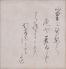 In this work, a handwritten poem by Emperor Gomizunoo (1596-1680, r.1611-29) appears on shôshikishi, or "small colored cardboard." The carefully-considered arrangement of letters on shôshikishi is quite beautiful. Being a skillful calligrapher, Emperor Gomizunoo left behind a number of calligraphic works in various styles; this work, with its delicate atmosphere, displays the tastes of the imperial court during the early Edo period (1615-1868).